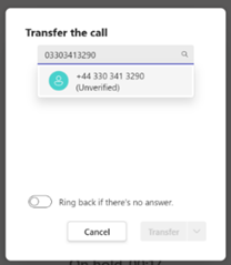 If you transfer the call without consulting first, you can opt to ring back if there is no answer.