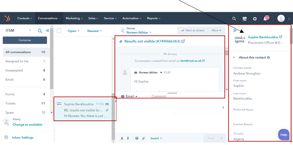 You can view all Customer Information. For example, which study centre, job role, any previous communication with NCUK etc.