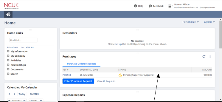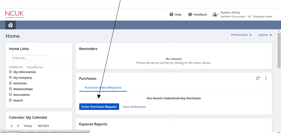 - On the Dashboard, click on ‘Enter Purchase Request’.