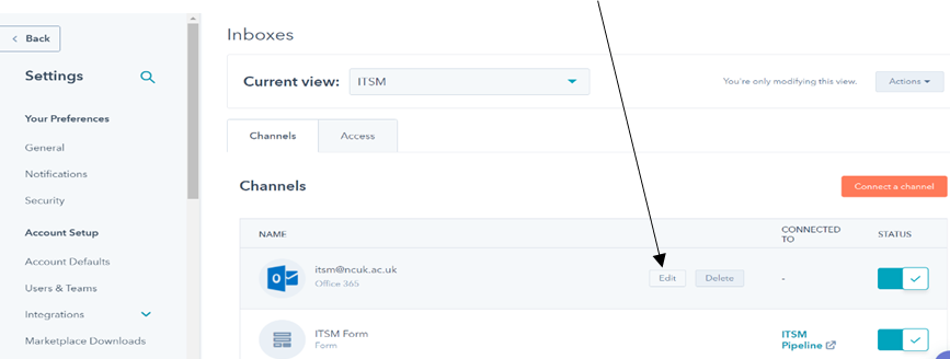 - Hover next to the group mailbox until you see the ’Edit’ button